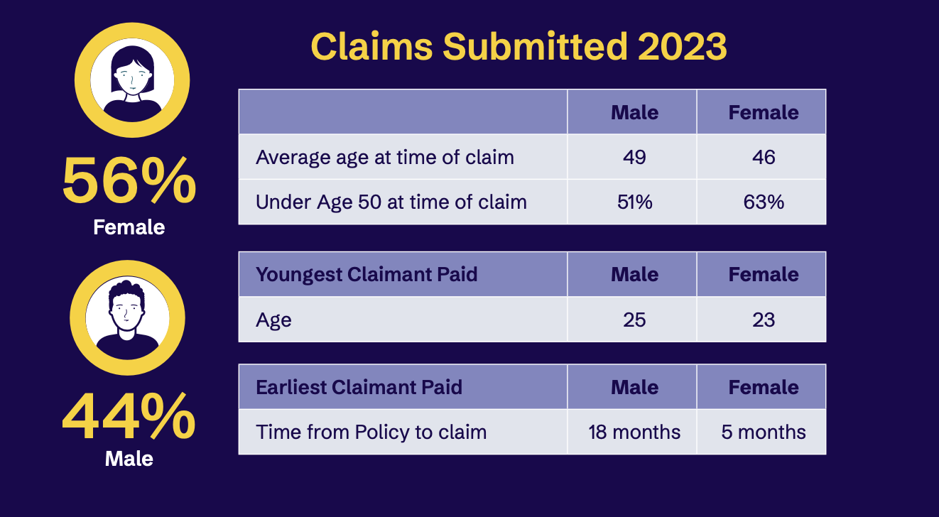 The youngest man to make a claim was 25, and the youngest woman was 23, showing that health issues can happen at any age.