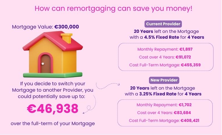 It means that you’ll stay in your existing home and use the equity you have in the property as security for the mortgage. You might want to raise some money for home improvements, debt consolidation, release equity, pay for education or other once off life events be they expected or unexpected, or simply avail of lower rates.